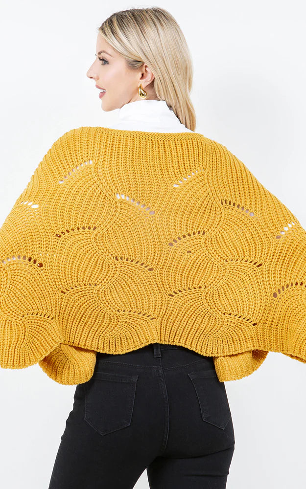 Poncho-MUSTARD Knit Poncho With Sleeves